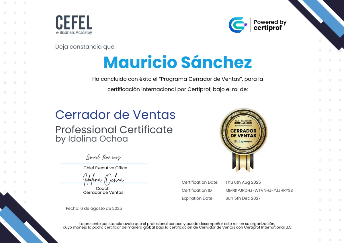 Desarrollar una mentalidad sólida, enfocada y resiliente que te permita asumir el rol de un cerrador profesional. Aprenderás a construir tu identidad de cierre, dominar tu energía y elevar tu propósito de venta para conectar con confianza y claridad.